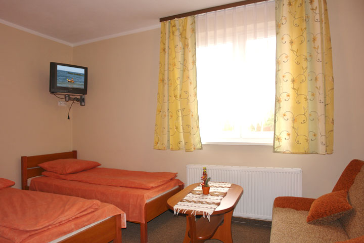 z jeziorem Resko. Oferujemy pokoje 2-, 3-,4-osobowe z pełnym węzłem sanitarnym i TV.